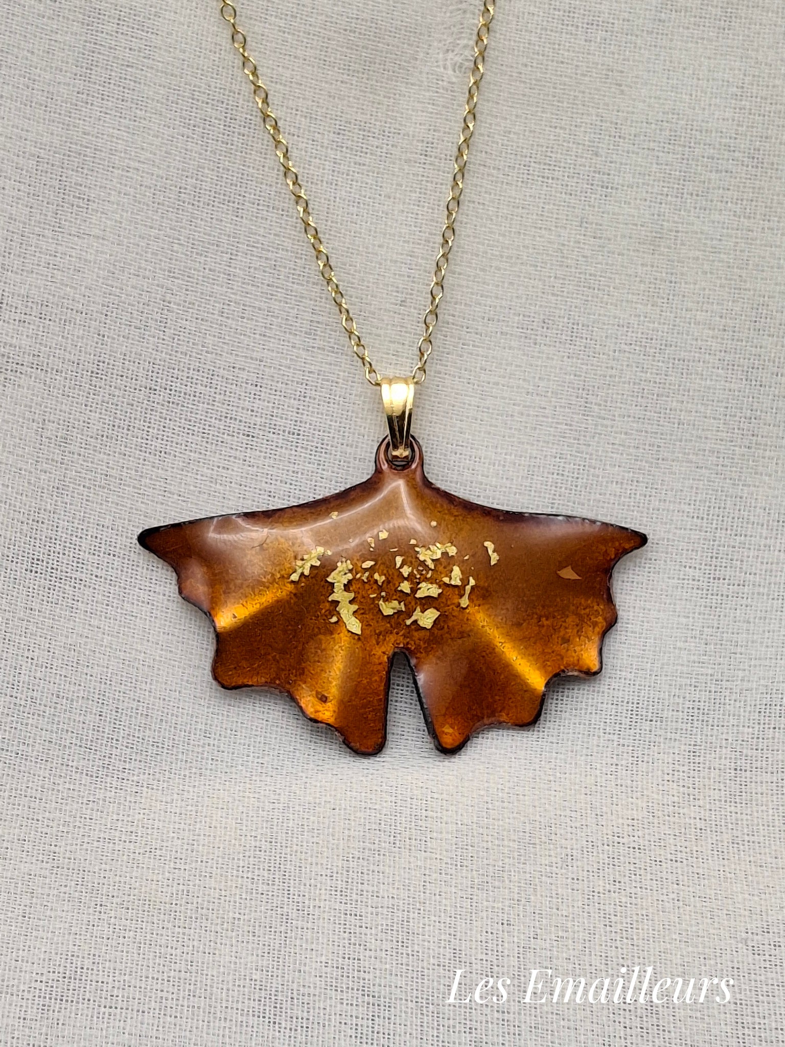 Pendentif en cuivre émaillé Ginkgo